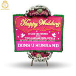 Karangan bunga papan ucapan happy wedding untuk acara pernikahan