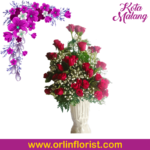 Bunga Meja dengan bunga mawar merah dan baby breath