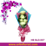 rangkaian buket mawar di solo dengan 5 tingkai bunga mawar putih